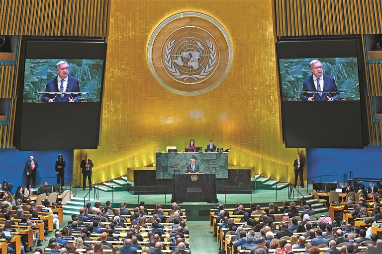 新华社联合国9月23日电(记者 潘云召 徐静)第80届联合国大会一般性辩论23日在纽约联合国总部拉开帷幕。联合国秘书长古特雷斯在致辞中表示,展望全球局势,国际社会必须围绕以下五个方面作出关键选择,即以国际法为根基的和平、人的尊严和人权、气候正义、让科技服务于人类以及加强联合国在21世纪的作用。