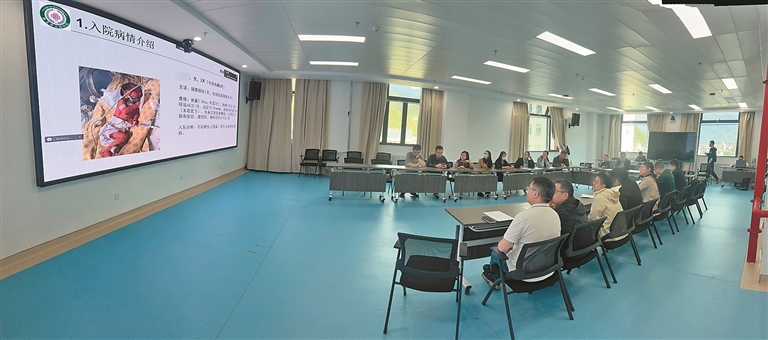 下图:为制定精准手术方案,林芝市人民医院组织全院医护人员大会诊。