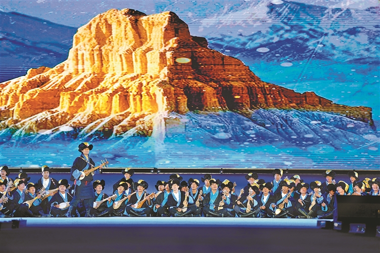 开幕式通过“线上直播+现场观演”模式,为现场各界来宾、干部群众及线上观众,呈现了一场内容丰富、形式多元、内涵深刻的视听盛宴。此次演出时长约80分钟,投入演职人员300余人次,共呈现13个特色节目。演出以弘扬优秀传统文化和铸牢中华民族共同体意识为基调,大胆革新艺术表达形式,将“音、舞、诗、画”巧妙融合,并镶嵌浓郁的阿里地域文化元素,通过多元文化交融的舞台叙事,生动诠释中华民族“多元一体、和谐共生”的深刻内涵,实现历史与人文的激情碰撞。