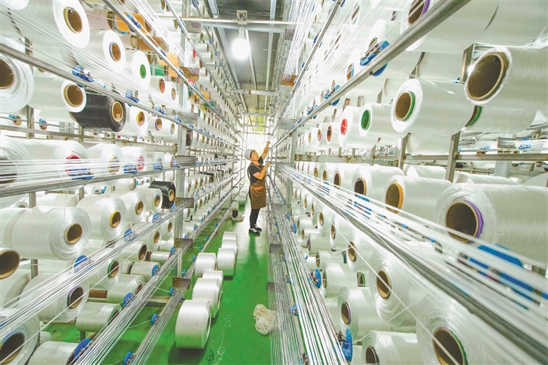9月27日,国家统计局发布数据显示,1至8月,在宏观政策发力显效、全国统一大市场纵深推进,叠加去年同期低基数等多重因素作用下,全国规模以上工业企业实现利润总额46929.7亿元,同比增长0.9%。图为9月27日,河北省遵化市高强化纤有限公司的工人在车间工作。新华社发(刘满仓 摄)