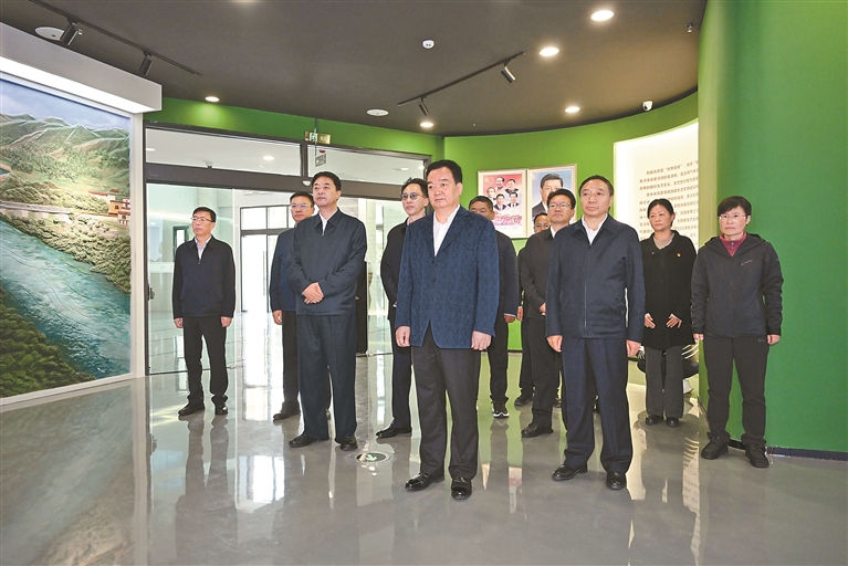 9月28日,自治区党委书记王君正调研南北山绿化工作。这是王君正在南北山绿化展览馆认真观看、听取介绍,详细了解南北山绿化工程总体规划、苗木栽培和成活率等情况。本报记者 李洲 摄