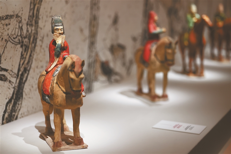 图为9月28日在沙特阿拉伯首都利雅得“天地同和——中国古代乐器展”上拍摄的中国古代音乐主题人物塑像。