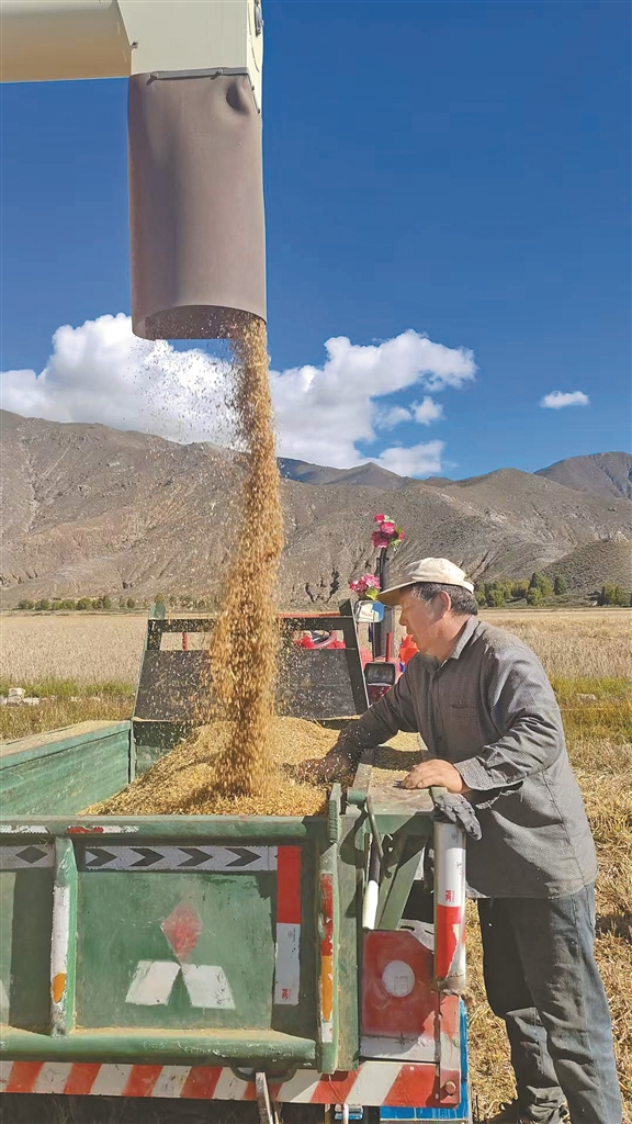 金风送爽,青稞飘香。日喀则各县区抢抓晴好天气,陆续开镰收割,人员农机齐上阵,全力确保秋粮应收尽收,颗粒归仓。