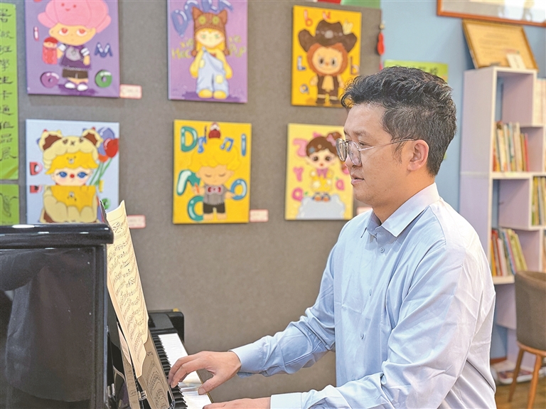 原来是一则招聘音乐老师的信息让他停下了回家的脚步。