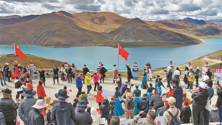 上图:山南市浪卡子县围绕“中秋遇国庆 欢乐不打烊”主题,在羊卓雍错、普莫雍错、恰央错等景区推出系列特色文化活动,激发文旅市场活力。