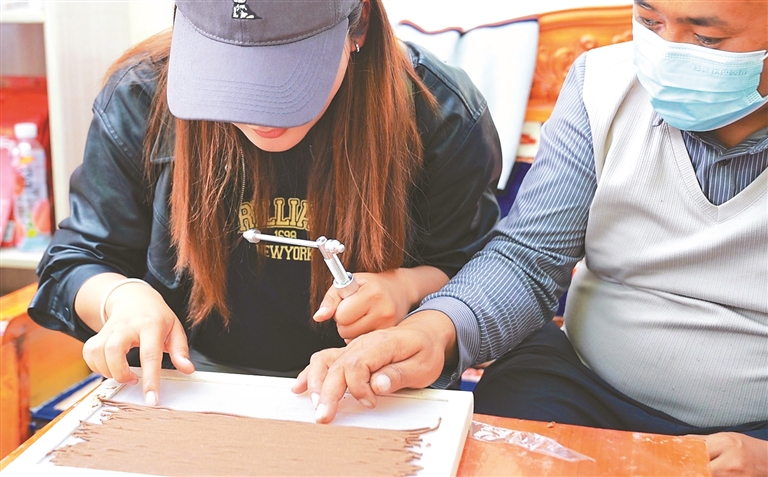 图①:群众体验药香制作过程。