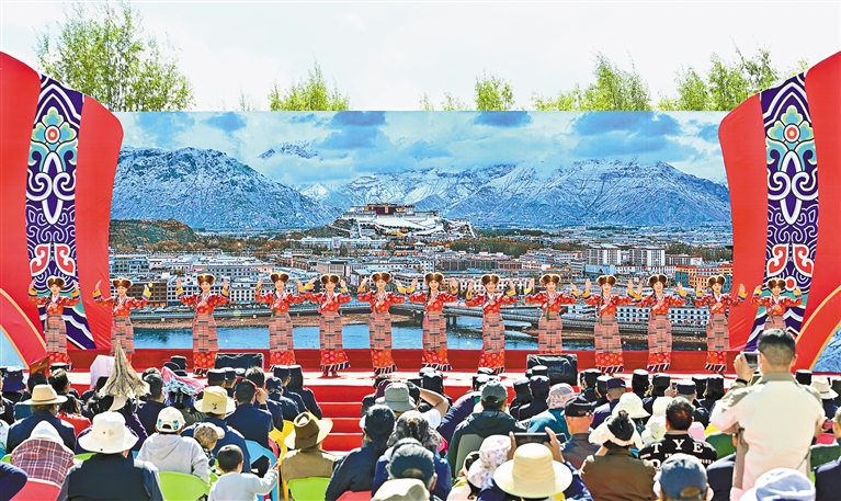 10月6日,“我们的节日·情满中秋节”警民联欢活动在拉鲁湿地公园举行。活动通过歌舞、非遗展示等形式,展现西藏文化魅力,促进民族文化交流交融。本报记者 唐斌 摄