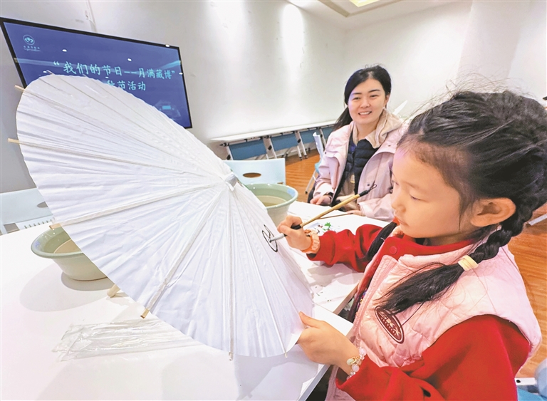 10月6日,西藏博物馆以中秋节为契机,举办“传承非遗文化 涂绘古韵纸伞”主题活动。体验者在专业老师指导下,绘制中秋主题油纸伞,并体验传统扎染技艺。本报记者 白玛泽旺 摄