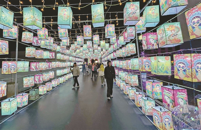 左图:市民游客观赏梦幻灯光秀。本报记者 白玛泽旺 唐斌 摄