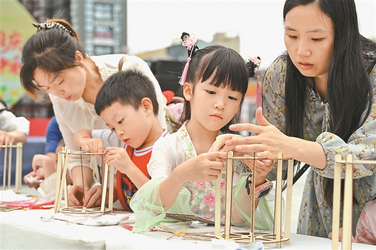 左图:10月6日,在四川省内江市东兴区西林街道,孩子们和家人一起制作中秋灯笼。