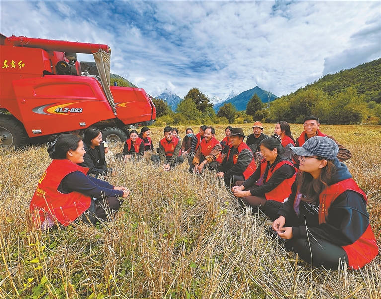 正值秋收农忙时节,林芝市工布江达县错高乡结巴村驻村工作队队员和村“两委”班子成员将惠民政策宣讲会搬到田间地头,为广大农牧民送上一堂接地气、有温度的理论课。