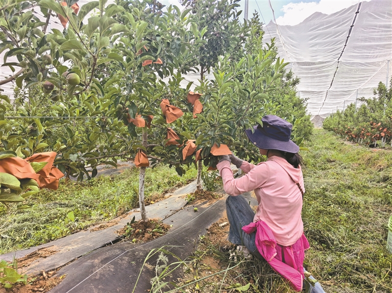针对当地种植技术落后、品种老化等瓶颈,在相关部门支持下,上诚产业在百巴镇率先建成集育种育苗、设施果园、先进管理技术于一体的现代化苹果实验示范园,通过应用现代化设施装备和科学管理手段,有效降低了生产成本,显著提升了苹果的产量与品质。