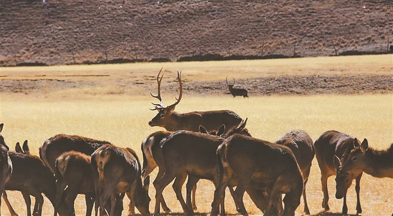 栖息在昌都市类乌齐县野生动物保护区的马鹿。本报记者 丹增群培 摄