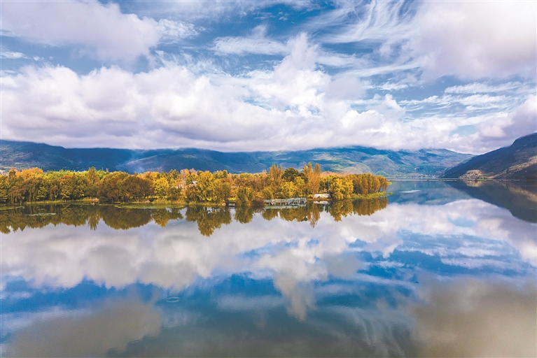 云南 图为10月18日拍摄的云南省大理白族自治州洱源县茈碧湖(无人机照片)。新华社发(罗新才 摄)