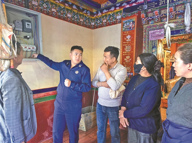 拉萨市消防救援支队宣传员深入寺庙为工作人员讲解用电安全。本报通讯员 梁诗敏 摄
