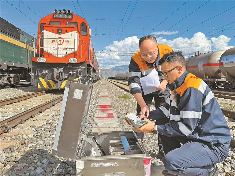 图为拉萨车务段工作人员在检查设备。