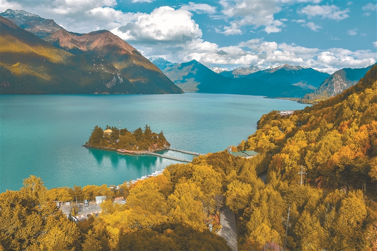 高原十月,秋意渐浓。天高云淡、层林尽染、水清湖蓝,迷人的山水风光似画卷一般,吸引着全国各地的游客纷纷进藏赏秋,各大景区人流如织,秋游西藏正当其时。图为国家5A级景区工布江达县巴松错景区的秋日风光。本报记者 刘枫 摄