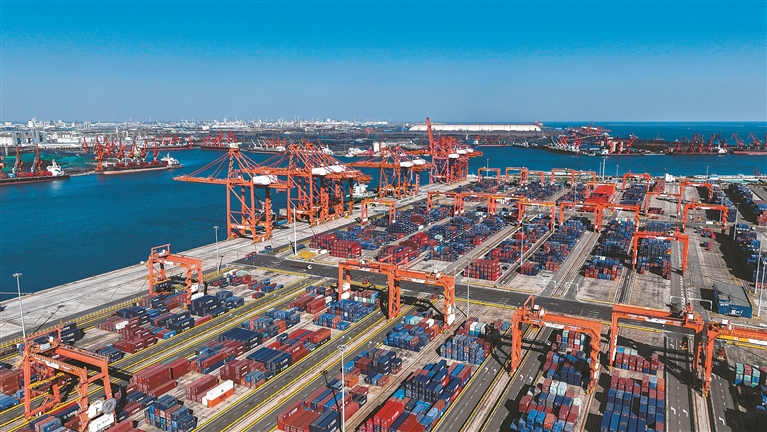 图为10月27日拍摄的河北省唐山港京唐港区集装箱码头(无人机照片)。新华社发(刘满仓 摄)