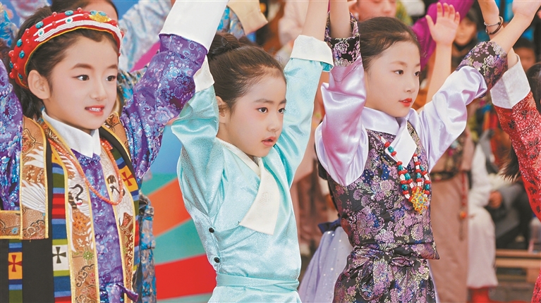 图为活动现场,小朋友正在表演节目。本报记者 袁海霞 摄