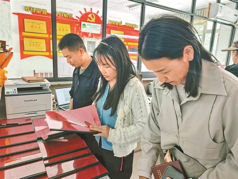 图为洛林乡驻村临时党支部成员在雪巴村督导检查驻村工作。 本报记者 杨小娟 摄