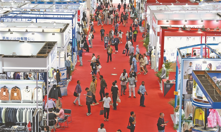 图为10月31日,客商在广交会上参观选购。新华社记者 卢汉欣 摄