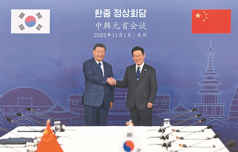李在明表示,热烈欢迎习近平主席时隔11年再次对韩国进行国事访问,这次访问对韩中关系意义重大。韩中建交以来,各领域互利合作不断深入,有力推动各自经济发展。韩中是邻居,更是密不可分的伙伴。韩方高度重视对华关系,愿同中方共同努力,推动双边友好合作关系得到更大发展。双方要密切高层交往,增进政党、地方交流,妥善处理分歧。中国“十五五”规划明确了未来5年的经济发展方向和重点,韩方愿加强对华互利合作,维护产供链稳定,给两国人民带来更多福祉。韩方愿同中方密切人文交流,改善国民感情。韩方支持中方主办2026年亚太经合组织领导人非正式会议,愿同中方加强国际和地区事务的沟通和协调,共同促进地区和全球的和平发展。