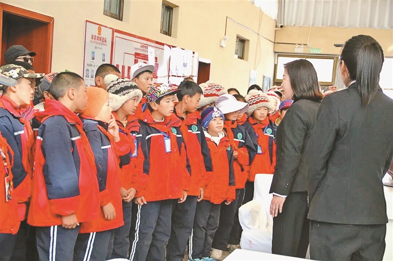 图为工作人员正在向学生们介绍立案庭情况。(图片由“象雄梅朵”女法官维权工作站提供)