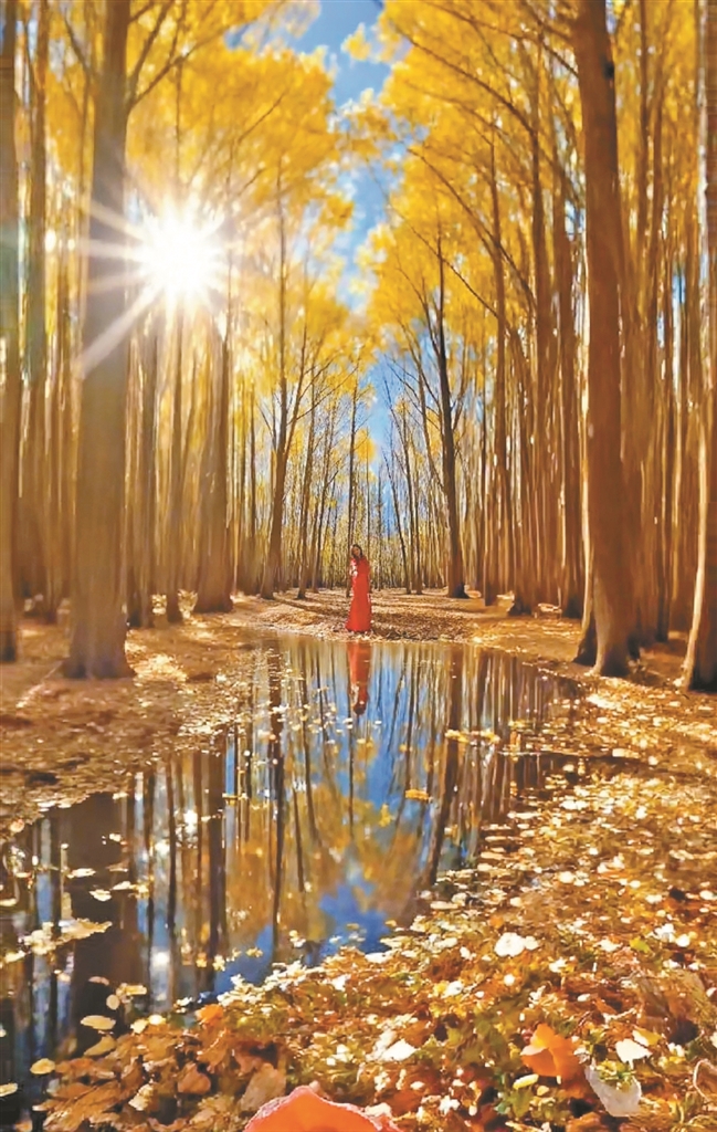 山林间的秋意也藏着灵动与敬畏。边交林镇当杰村藏嘎组的神秘树林里,24公里外的县城喧嚣被隔绝,秋风穿叶的轻响与落叶“咔嚓”的脆响交织成曲,游人踏着鎏金光影慢行,或举相机定格景致,或席地享受宁静;不远处的热振国家森林公园里,22万株以大果圆柏为主的千年古树(最高达国家一级保护级别),翠绿枝叶间缀满金黄与橙红,与远处雪峰构成层次分明的色块。文玩圈追捧的热振籽原果,正是这些古树自然脱落的馈赠,树旁“禁止采摘,违者必究”的标识格外醒目。同行的护林员顿珠次仁提醒:“这些古柏是高原‘活化石’,2018年起就明令保护,随便采摘不仅破坏生态,还违反《中华人民共和国野生植物保护条例》,之前有人受了处罚。”对自然的敬畏,让踏秋多了庄重的仪式感。