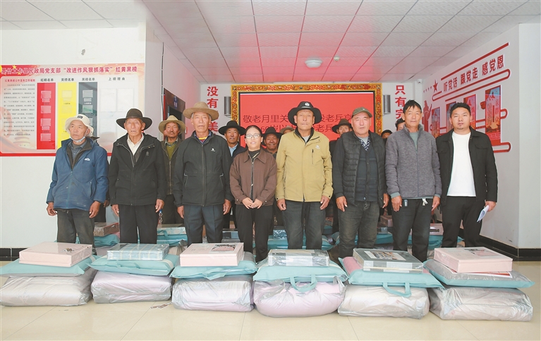 近日,墨竹工卡县民政局联合退役军人事务局开展“敬老月里送关怀,退役老兵享温情”主题活动,聚焦60岁及以上农村退役老兵群体,精准落实关怀服务与政策保障。 图为工作人员为退役老兵集中发放慰问物资。本报记者 格桑伦珠 摄