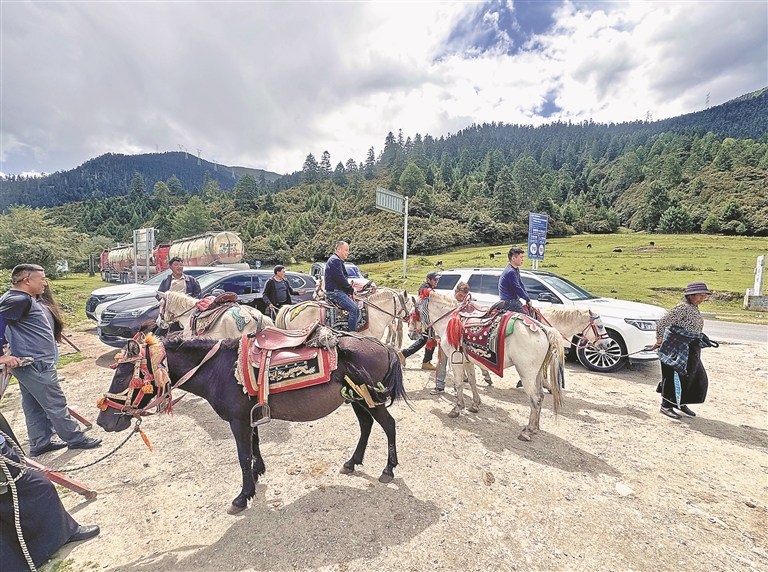 图④:林芝市鲁朗景区内,游客在体验当地特色骑马项目。 本报记者 白玛泽旺 摄
