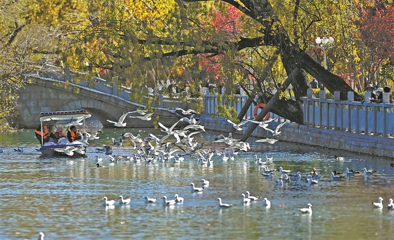 图为在宗角禄康公园内过冬的候鸟。本报记者 唐斌 摄