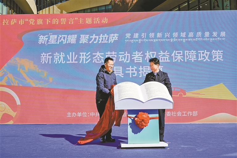 图为活动现场,《拉萨市新就业形态劳动者权益保障政策指引》首次亮相。本报记者 拉巴桑姆 摄