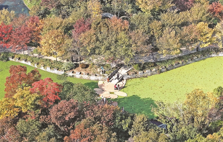 图为11月16日,游客在江苏省扬州市朴园景区游玩(无人机照片)。新华社发(孟德龙 摄)