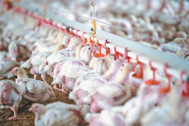 图为11月17日在西班牙林孔德尔奥比斯波一处养鸡场里拍摄的圈养雏鸡。