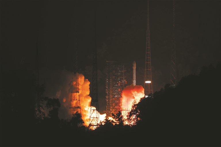 图为11月21日18时55分,我国在西昌卫星发射中心使用长征三号乙运载火箭,成功将通信技术试验卫星二十一号发射升空,卫星顺利进入预定轨道,发射任务获得圆满成功。