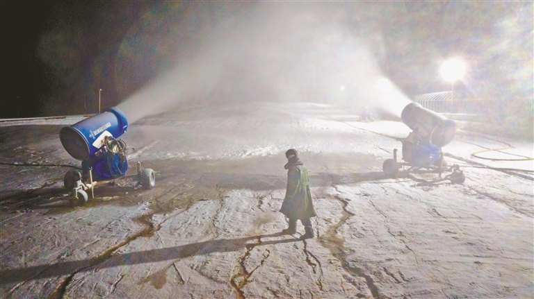近日,宁夏银川市夜间气温持续走低,银川市各滑雪场工作人员抢抓最佳作业窗口期,推进雪道塑形、设备调试及造雪等工作,迎接即将到来的冰雪旅游季。