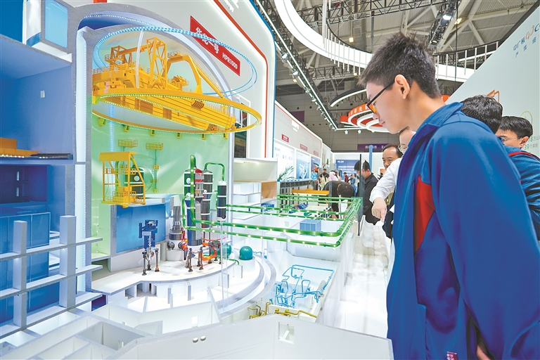 中海油的亚洲首艘圆筒型浮式生产储卸油装置“海葵一号”与亚洲第一深水导管架“海基二号”等模型,展现我国深海能源开发能力;中广核的三代核电技术“华龙一号”和核级数字化仪控平台“和睦系统”等,均具备自主知识产权……