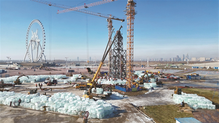 “我们争分夺秒、抢抓工期,全力打造世界级冰雪景观。”哈尔滨冰雪大世界设计研发部部长丛配玉说,存冰是指在上个冬季采好的优质冰块,依托专业保温技术储存10个月之久。此时松花江尚未封冻,存冰可以将冰建提前。目前场地平整、设备调试等前期工作均已就绪,近万名冰建工人陆续进场。