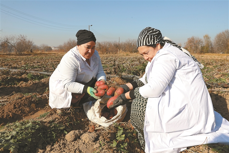 图为11月25日,在乌兹别克斯坦首都塔什干,乌兹别克斯坦科学院遗传学与植物实验生物学研究所人员在试验田收获马铃薯。新华社发(扎法尔 摄)