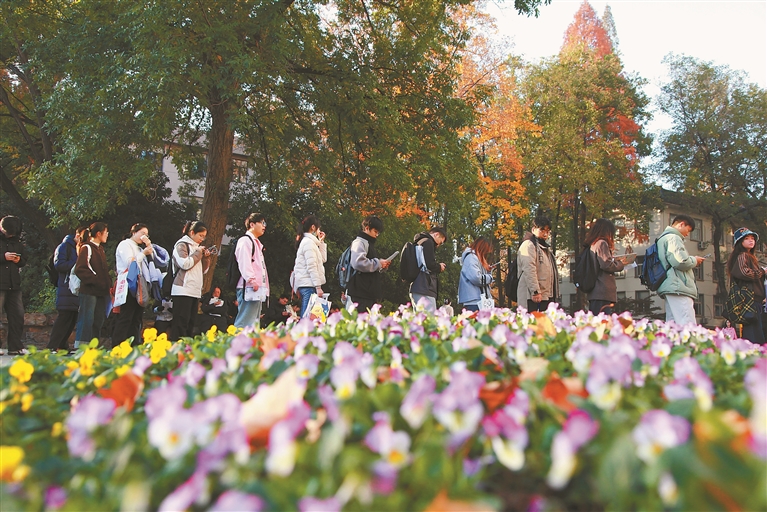 图为11月30日,在南京林业大学考点,考生在排队等候进场。新华社发(刘建华 摄)