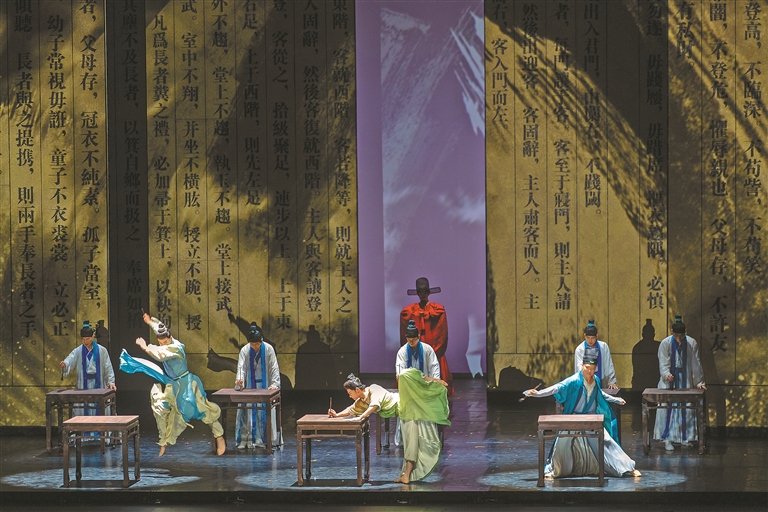 图为中国舞蹈演员在希腊雅典圣诞剧场出演舞剧《天工开物》(11月28日摄)。