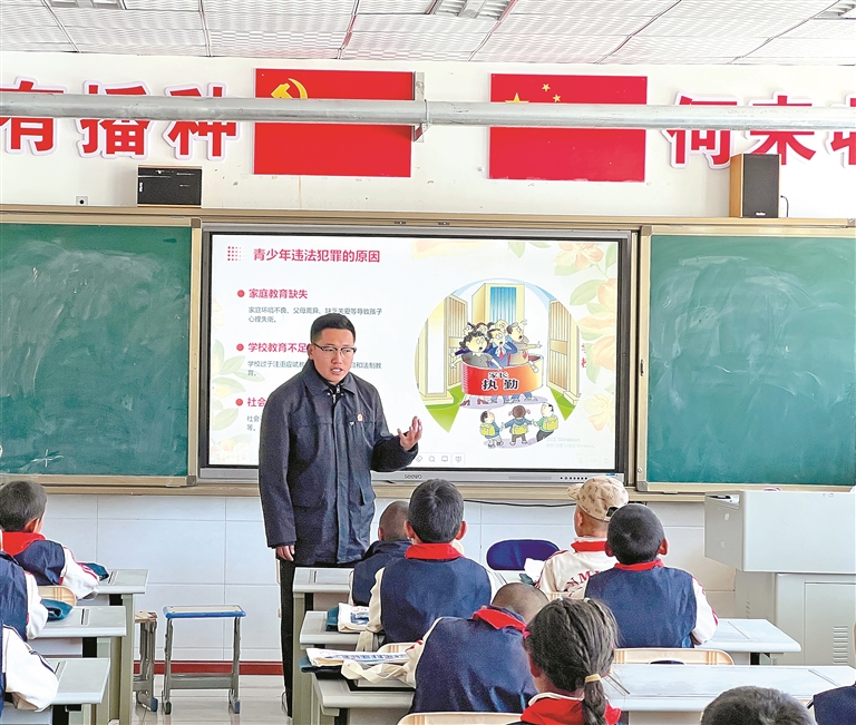 图为色尼区法院干警在学校讲法治课。本报记者 彭琦 摄
