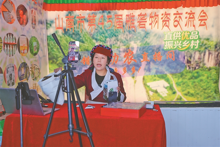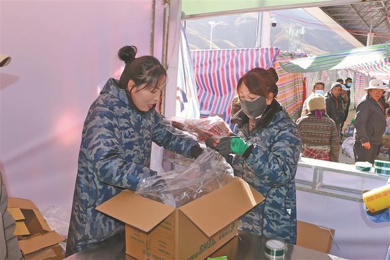 “家人们看过来,这是我们西藏特产的牦牛肉干,肉质紧实,味道醇厚……”在电商直播一条街,各直播间人气火爆。本届物交会构建了“主流平台+头部博主+县区同步”的传播矩阵,不仅开设物交会专属线上频道,更开创“主直播间+电商直播一条街”联动模式。同时,设立了100万元物流补贴专项资金,联合主流快递公司在现场设立智能寄递站,提供“线上下单、全国包邮、邮费全补”的便捷服务,并与援藏省市合作建立区外分拣仓,极大提升了“藏品出藏”效率,让山南好物突破地域限制,飞入全国寻常百姓家。