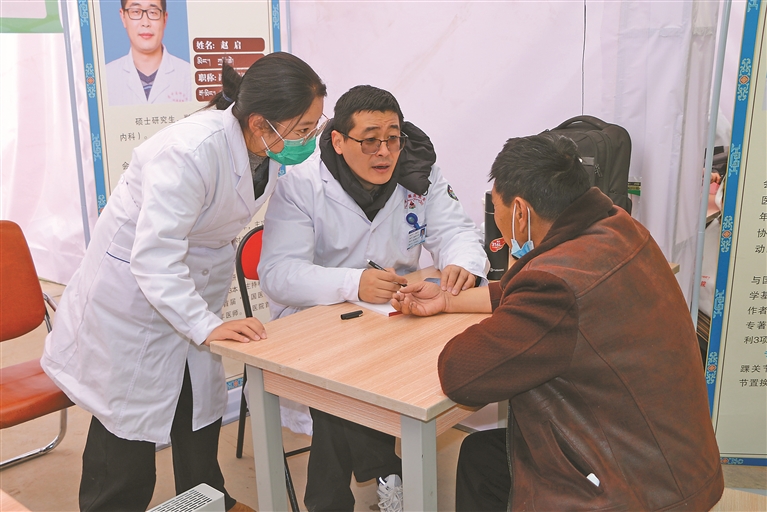 上午10时,与火热的交易场面相呼应的是义诊区内涌动的人潮与温情。由山南市卫生健康委牵头组织的“健康护航物交 医心服务百姓”大型义诊活动准时开启。来自北京协和医院、中国医学科学院阜外医院、北京大学人民医院以及安徽、湖南、湖北三省援藏医疗队、山南市人民医院、藏医医院、妇幼保健医院的40余位权威专家齐聚一堂,搭建起一个涵盖多学科、融合中西医的“一站式”健康服务平台。专家们耐心细致地为前来咨询的人们检查身体、解读报告、指导用药,将优质医疗服务直接送到群众身边,成为物交会上一道格外温暖的风景线,让群众在置办货物、享受购物乐趣的同时,也收获了一份实实在在的“健康大礼”。