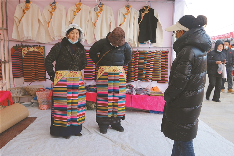 农畜产品区内,措美的牛羊肉、隆子的藏香猪散发着诱人的气息;特色产品区里,加查的核桃、扎囊的氆氇、洛扎的荞麦面吸引着顾客驻足问询;民族手工艺品展位前,匠人现场演示木碗雕刻、邦典编织的古老技艺。