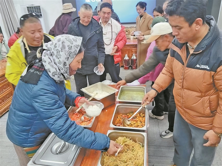 文明的种子,在烟火气中悄然生长。占地120平方米的社区食堂,不仅是解决“吃饭难”的民生阵地,而且是涵养文明习惯的“实践课堂”。实践站志愿者发起“光盘行动”倡议,在取餐口张贴藏汉双语的“按需取餐”提示,还会在就餐时轻声提醒“阿佳,不够再添,别浪费”。