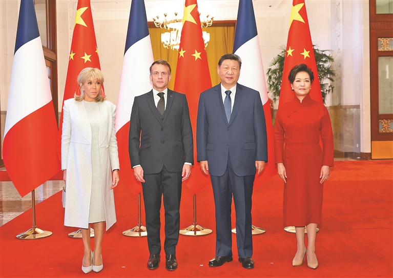 习近平指出,中法都是有远见、有担当的独立自主大国,是推动世界多极化、促进人类团结合作的建设性力量。当前,百年变局加速演进,人类又一次站在何去何从的十字路口。中法两国应当展现责任担当,高举多边主义旗帜,坚定站在历史正确一边。中方愿同法方一道,始终从两国人民根本利益和国际社会长远利益出发,坚持平等对话、开放合作,让中法全面战略伙伴关系在“新甲子”走得更稳更好,充分彰显其战略价值,为推动平等有序的世界多极化、普惠包容的经济全球化作出新的贡献。