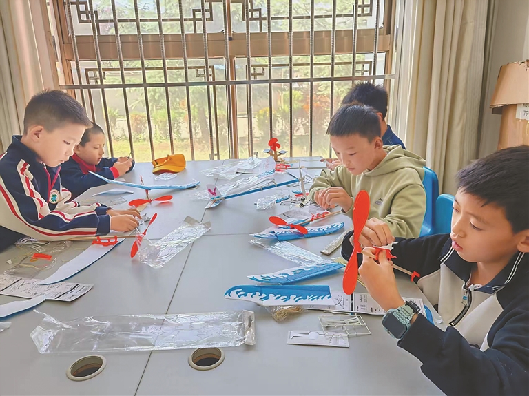 为落实“双减”政策,丰富学生的课余生活,让学生享受到优质的校外教育资源,今年以来,拉萨市教育局青少年示范性综合实践基地常态化开设“公益周末兴趣班”,以“零费用、高品质、可持续”为宗旨,为全市学生提供优质素质教育服务,取得明显成效,赢得社会广泛赞誉。图为手工课上,学生在制作手工。本报记者 鹿丽娟 摄