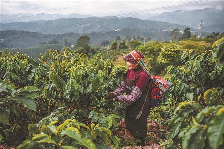 近期,云南省普洱市咖啡果陆续成熟,当地农民忙着采收咖啡鲜果。目前,普洱全市咖啡种植面积达70.39万亩,咖啡豆年产量8.4万吨,全产业链产值突破100亿元。