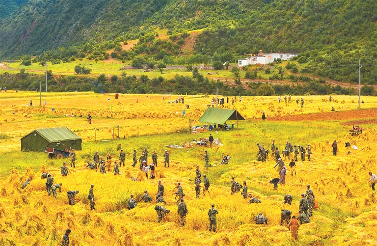 戍守藏东高原的昌都军分区始终赓续“特别能吃苦、特别能战斗、特别能忍耐、特别能团结、特别能奉献”的老西藏精神,在保卫边疆的同时,践行为民服务初心。早在脱贫攻坚战略全面推进之年,该军分区响应上级“军民同心打赢脱贫攻坚战”的号召,经过实地摸排走访,于2018年将地处偏远、基础薄弱的约日村列为重点帮扶对象,从此结下军民鱼水深情。初期帮扶中,昌都军分区聚焦“两不愁三保障”核心任务,先是筹集资金为村里特困户翻新危房、铺设饮水管道,解决“住不安稳、喝水不便”的急难问题;再协调医疗骨干组建义诊服务队定期进村,开展常见病诊疗、慢性病管理和健康宣教,填补乡村医疗空缺;组织官兵手把手教村民改良青稞种植技术、搭建标准化牦牛棚圈,提升农牧产出效率。脱贫摘帽后,昌都军分区没有“撤摊子、断路子”,而是继续助力约日村乡村振兴,将“海拔再高高不过使命,担子再重重不过责任”的信念转化为实打实的帮扶行动,成为村民最信赖的“金珠玛米”。